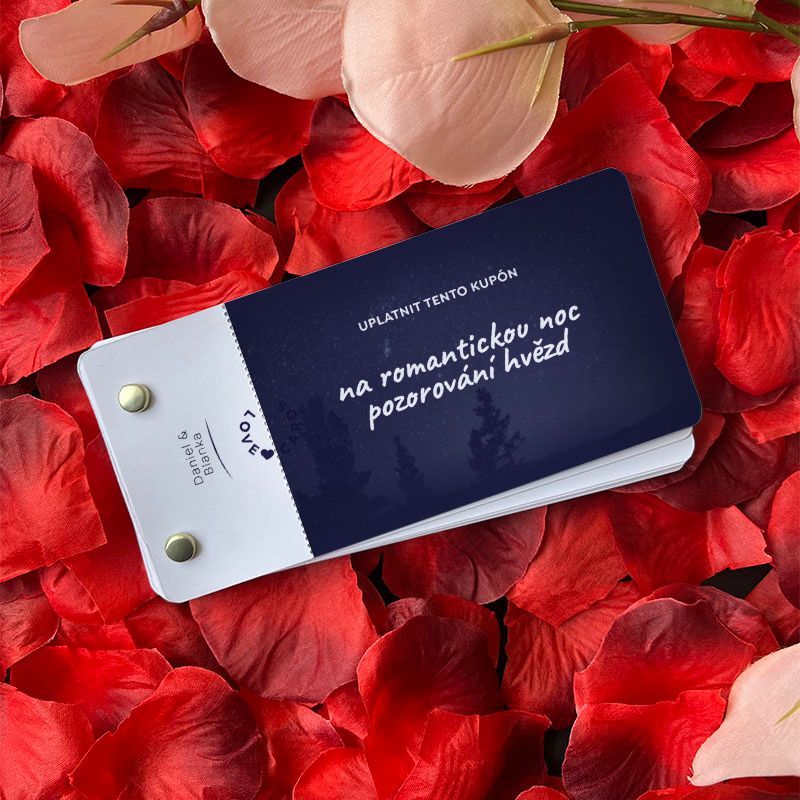 Chcete udělat radost své milované osobě, ale nic vás nenapadá? Kuponová knížka Love Cards by pro vás mohla být ideálním řešením. Kupony mohou být zdrojem radosti, laskavosti nebo osvobození od nějaké činnosti (např. dnes nemusíte mýt nádobí), ale mohou být i malou nezbedností nebo hýčkáním - záleží jen na vaší fantazii. 😜 Love Cards sestavíte za pár minut, text i obrázek můžete měnit podle vlastního uvážení (dokonce můžete mezi kupony ukrýt něco, co využije nejen váš partner, ale i vy 😉).
